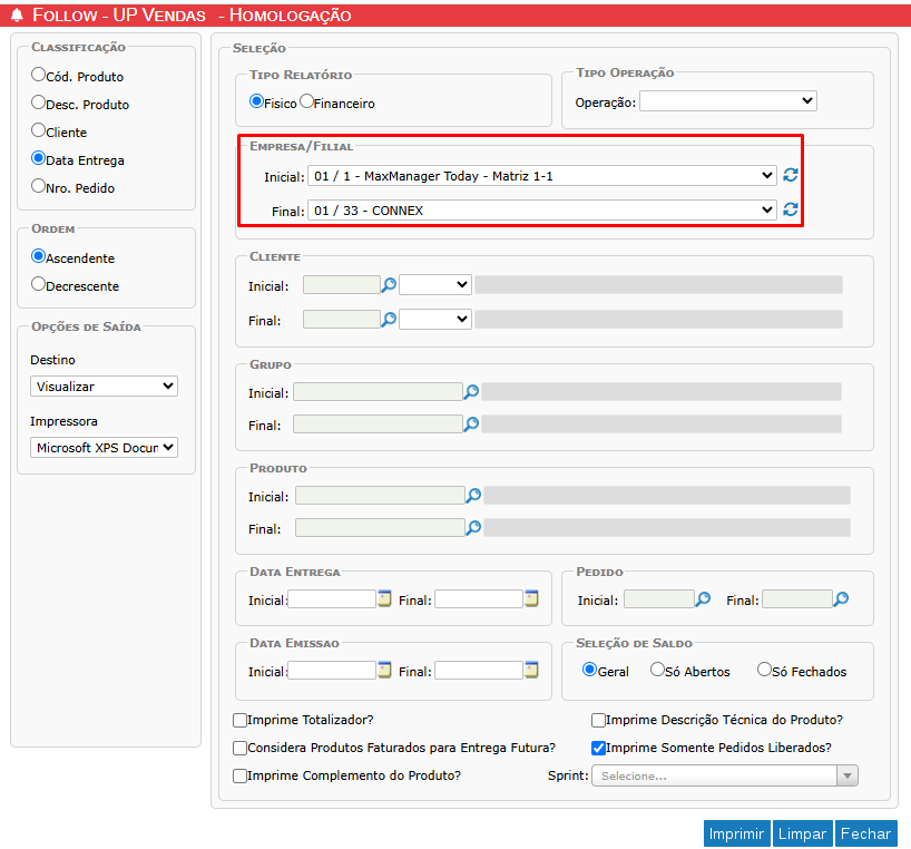 A partir da versão 2.25.1.14138 do MaxManager, a tela de geração de relatórios de Follow-Up de Vendas foi aprimorada para oferecer maior flexibilidade na análise de dados.