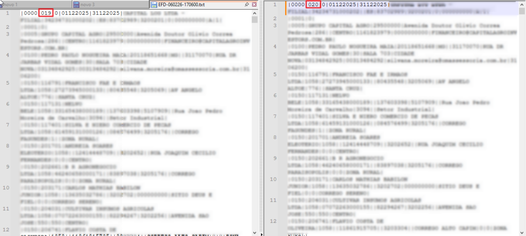 A primeira refere-se à versão do arquivo que anteriormente gerava com a versão 019 e para o ano de 2026 a versão exigida passa a ser a 020.